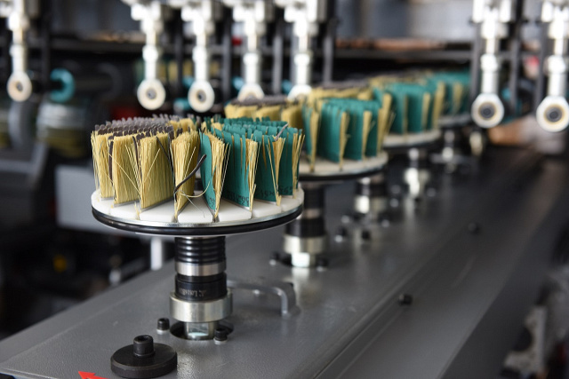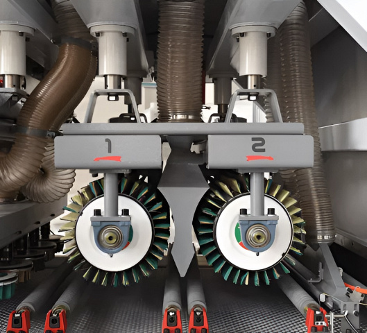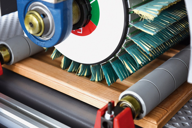 ![]() | Узел продольного шлифования (R) Третий шлифовальный блок с двумя валами большого диаметра, управляемые отдельными двигателями. Функция поворота узловдо 4 градусовдает возможность сместить угол атаки при шлифовании тем самым создавая более деликатную шероховатость поверхности на обрабатываемой детали. Узел продольного шлифования (R) оснащен шлифовальным инструментомFlex Trim (Дания), в комплекте 30 шт. x 2 вала (общее количество - 60 шт.). |