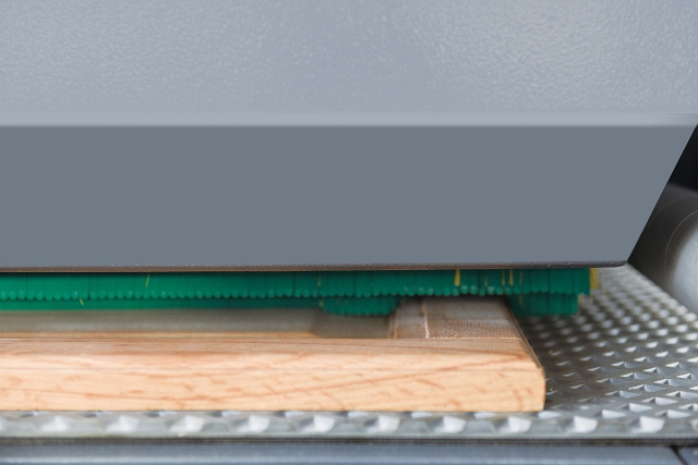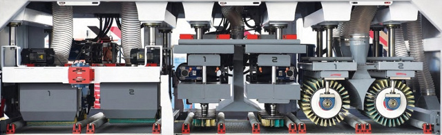 ![]() | Прижимы заготовки Сдвоенная система прижима заготовок позволяет надежно фиксировать заготовки в двух точках, предотвращая ее вибрацию. Оснащены электрорегулировкой подъема - опускания, что в сочетании с сегментными эластичными роликами обеспечивает точный и деликатный прижим заготовки. |