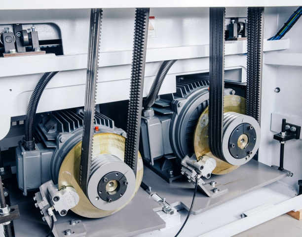 ![]() | Отдельный привод шлифовальных узлов Каждый шлифовальный узел имеет привод от отдельного двигателя, что гарантирует стабильную работу станка при тяжелых нагрузках. Надежный привод каждого узла через 4 зубчатых ремня гарантирует стабильную передачу крутящего момента. Остановка вращения шлиф лент осуществляется с помощью надежных тормозных колодок. |