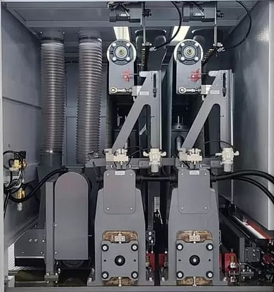 ![]() | Шлифовальные узлы Станок оснащен 2-мя шлифовальными узлами: мягкие валы жесткостью 26 шор увеличенного диаметра 215 мм. Данная конструкция позволяет идеально огибать рельеф заготовки и осуществлять высококачественное шлифование поверхностей с нанесенным ЛКМ, шпонированных деталей и шпона толщиной 0,5 мм (с вакуумным столом). После шлифовальных узлов установлена щетка для очистки от пыли, что позволяет исключить отдельную операцию обеспыливания, повысить производительность и снизить себестоимость продукции. |