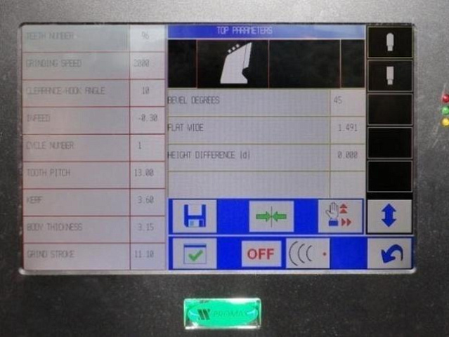 ![]() | Настройка параметров заточки Осуществляется при помощи программы: Выбирается форма зубьев пилы, и вводятся ее основные параметры – диаметры, углы заточки, толщина, количество зубьев и т. д. Меню компьютера является наиболее простым и удобным для пользователя, что позволяет управлять станком даже оператору без специального образования. Ввод параметров заточки и пилы занимает не более 1 минуты Все параметры сохраняются в памяти станка, так как он обладает операционной системой с микропроцессором, при необходимости параметры можно воспроизводить из памяти, тем самым экономится время на настройку рабочего цикла. |