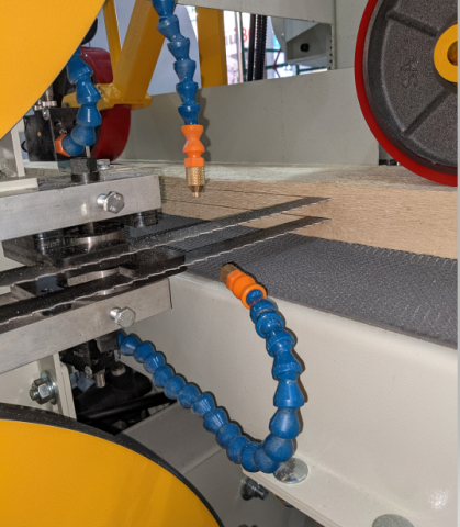 ![]() | Система подачи очищающей жидкости Подача очищающей жидкости производится с помощью форсунок. Для работы данной системы необходим сжатый воздух (компрессор). Данная опция препятствует налипанию опила на пильную ленту и шкивы, что обеспечивает идеальное качество пропила, в том числе при распиловке смолянистых пород. |
