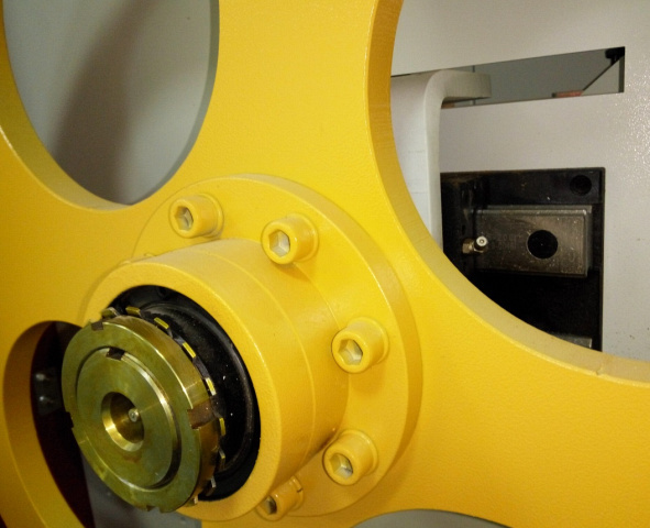 ![]() | Станина и шкифы Шкивы станка выполнены из специальной легированной стали, которые проходят динамическую балансировку, в виду чего полностью отсутствует вибрация при работе, а пиление происходит легко и мягко. Пильный узел защищен кожухом с легким доступом для контроля, обслуживания и замены ленточных пил. Увеличение диаметра шкивов до 710 мм дало возможность увеличить скорость резания и подачи, тем самым, увеличив производительность. |