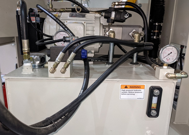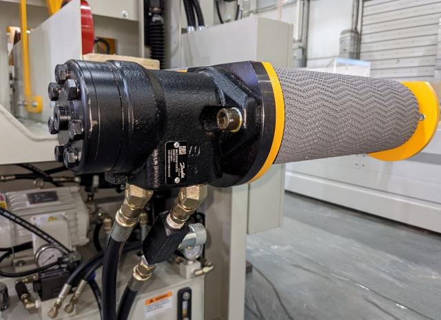 ![]() | Подающий транспортер Гидравлический привод транспортерной ленты гарантирует мощную и равномерную подачу заготовки в рабочую зону, что позволяет пилить древес HIGH POINT HP-68ину любой твердости. Скорость подачи ленточного транспортера регулируется бесступенчато. Давление в системе обеспечивается благодаря гидростанции расположенной на станке. Гидростанция укомплектована контрольно - измерительными приборами, удобной наливной и сливной горловиной, что позволяет контролировать ее работу и легко обслуживать. Для эксплуатации станка в сложных климатических условиях и усиленных режимах эксплуатации предусмотрен радиатор охлаждения масла на гидростанции. |