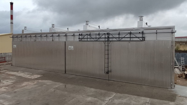 ![]() | Вентиляционная система В крыше камеры, увеличенной толщины 150 - 200 мм, располагается вентиляционная система с полностью алюминиевыми патрубками и заслонками Ø400 мм. Централизованный вентиляционный привод программно управляет всеми заслонками, обеспечивая надежную и быструю вентиляцию. В качестве дополнительной опции предлагается рекуператор тепловой энергии - запатентованная в Германии технология вентилируемого теплообменника с электроприводом. На крыше камеры располагаются дополнительные алюминиевые воздуховоды, внутри которых расположены теплообменники для подогрева холодного свежего воздуха за счёт отработанного влажного горячего воздуха. Каждый воздуховод оснащен принудительной вентиляцией с 2 блоками двигателей мощностью 1,1 кВт. Это позволяет повысить температуру поступающего холодного свежего воздуха, обеспечить более быстрое время вентиляции, сократить время и улучшить качество сушки пиломатериалов (предотвращает растрескивание древесины при контакте с холодным воздухом) Система рекуперации тепла позволяет использовать тепловую энергию в максимально возможной степени, тем самым повышая тепловую эффективность камеры на 10%. |