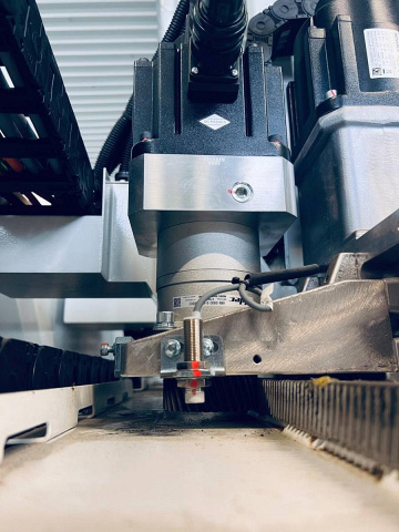 Датчик установлен на массивной раме, что гарантирует стабильность и точность измерений детали. Служит для контроля линейных размеров детали, позволяя на этом этапе выявить производственный брак и предотвратить повреждение станка из-за ошибки оператора. Датчик оборудован форсункой для продувки.