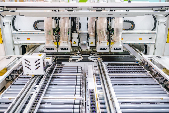 Каждая из 4-х верхних сверлильно-присадочных голов имеет увеличенное количество присадочных шпинделей как для присадки в пласть, так и для торцевого сверления.