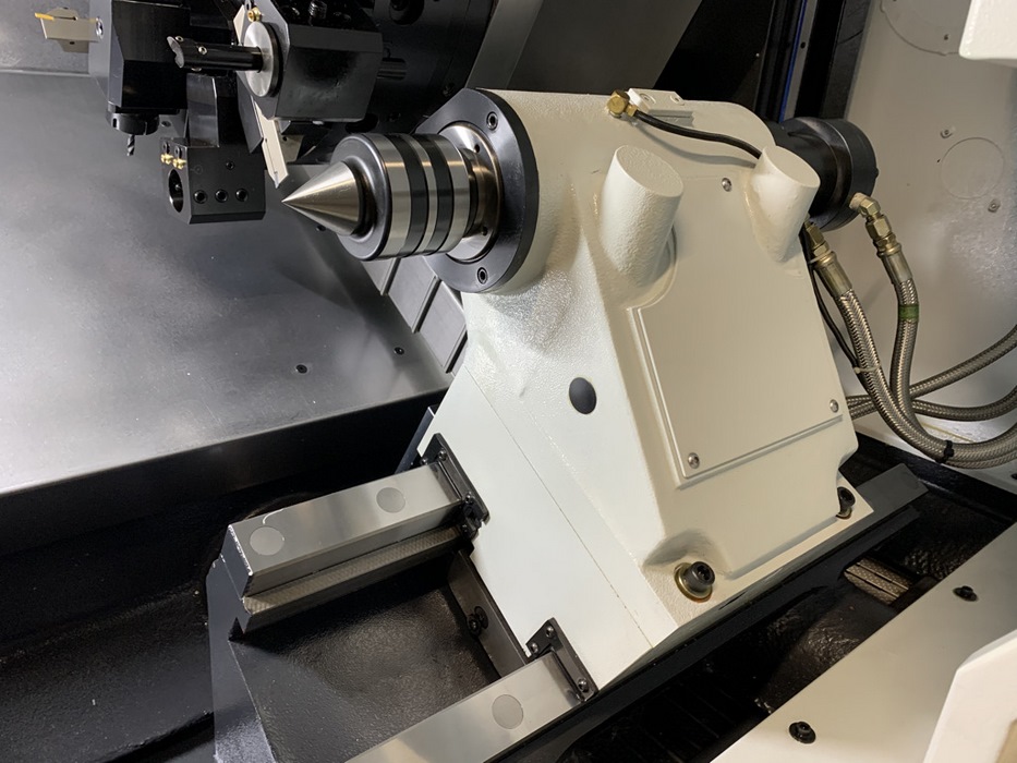 ![]() | Автоматическая задняя бабка Предназначена для фиксации и поддержки длинных, а также тяжелых заготовок, при обработке в центрах. Перемещается по широким направляющим скольжения прямоугольного сечения, что обеспечивает высокую жёсткость и точность при обработке на тяжелых режимах резания. Задняя бабка приводится в движение с помощью каретки револьверной головки. |