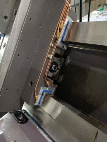 ![]() | Оси X и Z Оси X и Z оснащены высокопроизводительным двигателем подачи αif22/3000 Fanuc (Япония) - 4 кВт. Направляющие скольжения увеличенного сечения коробчатого типа изготавливаются из цельной отливки, поэтому позволяют производить скоростную обработку в самых тяжелых условиях. Закаленные индукционным способом и прецизионно шлифованные направляющие обеспечивают высокую точность в течение всего срока службы. Каретка увеличенной ширины способствует снижению вибраций, при тяжёлых режимах обработки – это значительно увеличивает стойкость режущего инструмента и повышает стабильность обработки. Направляющие по оси X надёжно защищены герметичными кожухами, что исключает повреждение поверхности направляющих стружкой. |