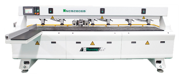NCB2806D - это торцевой присадочной станок с ЧПУ нового поколения, предназначен для высокоточного сверления сквозных и глухих отверстий в торцах и плоскостях мебельных щитов и обеспечивает сверление всех карт присадки за один проход детали.
