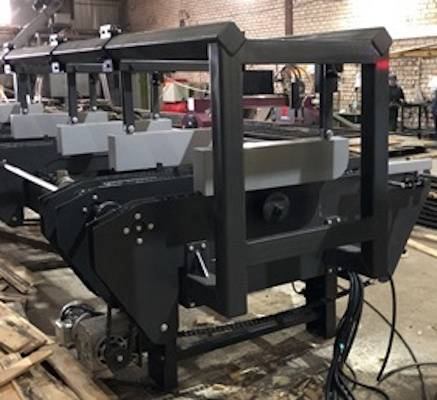 ![]() | Подающий конвейер Подача заготовок происходит при помощи конвейера с одинарной цепью (на первой и последней пиле) и сдвоенной цепью на центральных пилах. Цепь на конвейерах используется усиленная ПР-25.4 с максимальной нагрузкой на разрыв 60 тонн. Данная цепь не вытягивается, а отторцовка заготовки происоходит всегда под прямым углом. Каждый конвейер имеет жесткие упоры для подачи досок. Все упоры выставлены в один уровень, что дает высокое качество и перпендикулярность реза. |