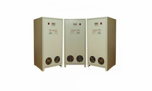 Конструктивно, каждый стабилизатор выполнен в вертикальном металлическом корпусе окрашенным серой порошковой эмалью, на передней панели расположен дисплей с пленочной клавиатурой и кнопкой «пуск» включения стабилизатора. Автомат защиты и клеммная колодка для подключения сети и нагрузки, находятся в нижней части под передней панелью. Вентиляция внутренних элементов стабилизатора осуществляется принудительно через заборные отверстия на задней стенке стабилизатора.